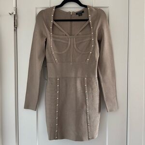Vintage Y2K Marciano taupe gray long sleeve bodycon bandage dress - Medium