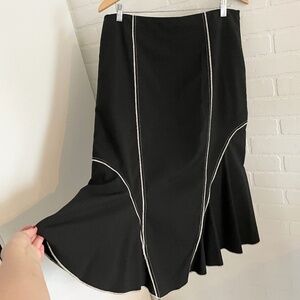 Vintage Y2K Midi Skirt Black Cream Asymmetrical Mermaid Wool blend Sz 12