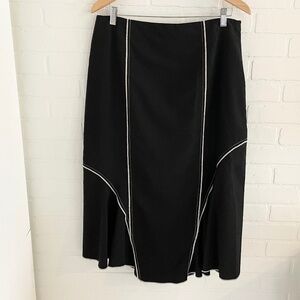 Vintage Y2K Midi Skirt Black Cream Asymmetrical Mermaid Wool blend Sz 12