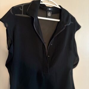 Vintage Y2K Mossimo Sheer Black Cap Sleeve Blouse Black Satin Trim