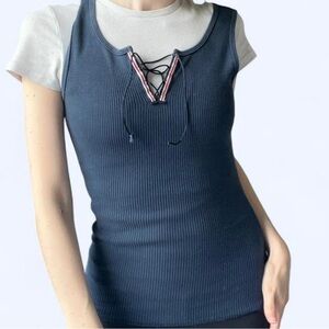 Vintage Y2K Navy Blue Ribbed Tommy Hilfiger Womens Lace Up Tank Top Small