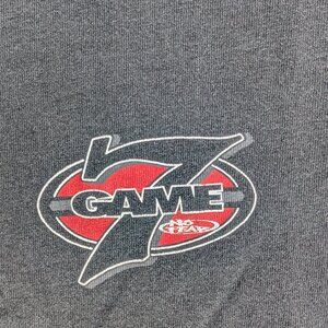 Show off your bold attitude with this vintage Y2K No Fear t-shirt. This men's size large shirt is a classic black pullover, featuring a dynamic Game7 graphic that captures the edgy, athletic style of the era. The comfortable crew neck and retro design make it a must-have for any fan of vintage streetwear or a collector of nostalgic apparel. It’s perfect for adding a touch of bold, retro cool to your casual wardrobe.