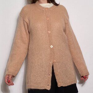 Vintage Y2K gorgeous fuzzy mohair cardigan in skin flattering soft rosy peach! Love the neutral tone and long cut, major grunge vibes but can also be worn in a minimal sophisticated way! By August Silk.