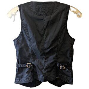 Vintage Y2K Point Zero Black Vest Contrast Stitch Utility Cropped Waistcoat Sz S