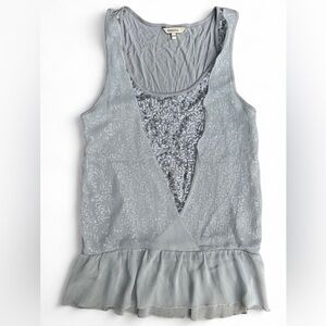 RW&CO Womens Grey and Silver Sequin Ruffle Boho Tank Top XS