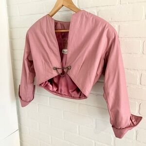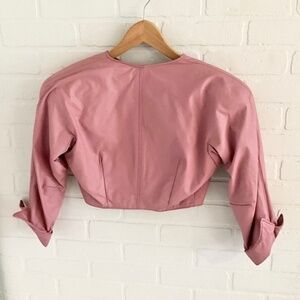 Vintage 80s 90s Revolve vibe Moto Motorcycle Barbie Barbiecore Structural Designer Genuine Leather Bold Rock Grunge Grungy Night out Date night Party Cocktail Pastel Cropped Bolero Cuffed Unique Metallic Lion Animal Biker Bikercore Easter Holidays Mob wife Energy Maximalism