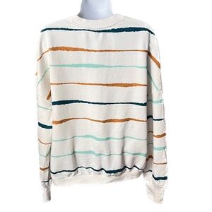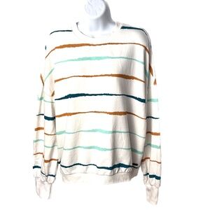 Vintage Y2K Roxy Sweatshirt White Striped Size Extra Large XL Crew Neck