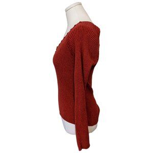 Vintage Y2K Rust Red Ribbed V-Neck Sweater Knit Top Cotton School Bella Swan L