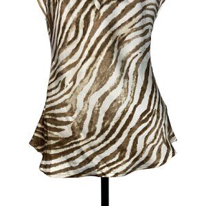 neutral satin blouse, tiger print top, french girl aesthetic, signature larry levine, fall satin blouse, minimal chic style, flowy neutral top, elegant satin cami, brown print blouse, classy timeless fashion, parisian girl style, light fall blouse, feminine soft top