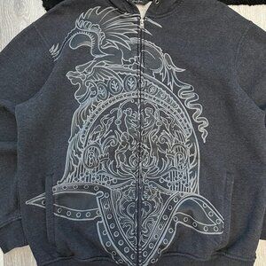 Vintage Y2K Sean John Men's Boxy Full Zip-Up Gray Hoodie - Size XL