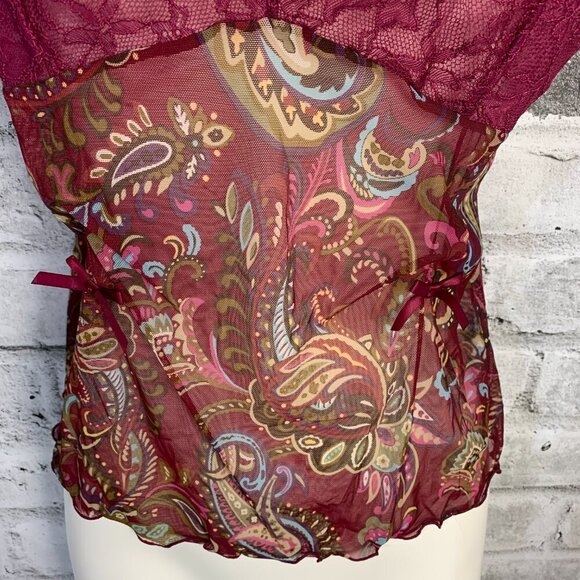 Vintage Y2K Sheer Babydoll Top Paisley Chiffon Lace Empire Waist Camisole Tank