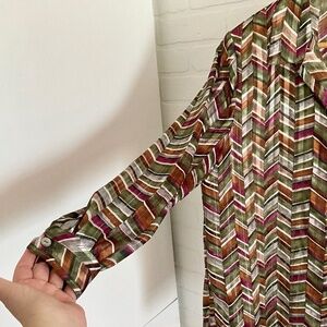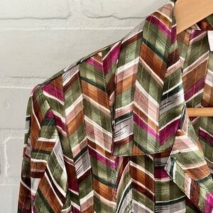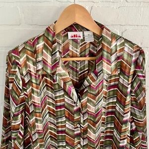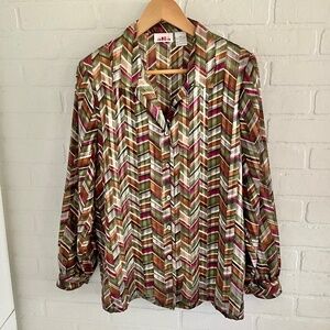 Vintage Y2K Sheer Blouse Earthy tones/purple/gold/Olive green metallic Size 12