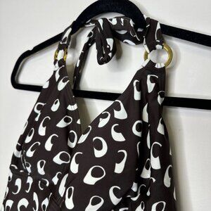 Vintage Y2K Silhouette Solutions Halter Tankini Top Brown & White Abstract Print