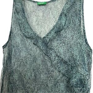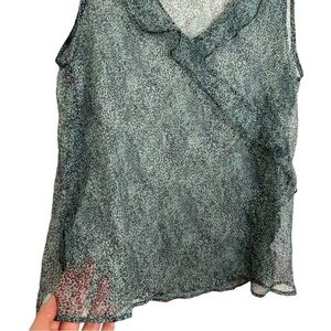 Vintage Y2K Silk Sheer Ruffle Top Size Medium Green Animal Print Made In Italy
