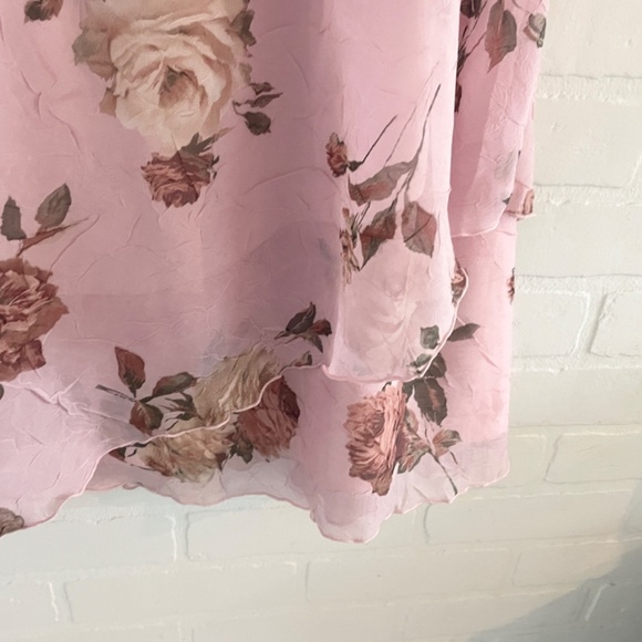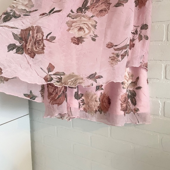 Vintage Y2K Skirt Flowy Fairy Lined Asymmetrical Rose Floral print Pink Sz 24W