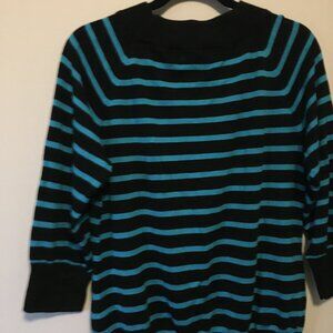 Very good preowned vintage condition, striped black and turquoise, knit, crewneck sweater by Tradition. Pure 90s and early 2000s vibes.
