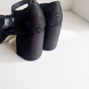 Vintage Y2K Studio Roma Black Satin Floral Chunky Heels 11