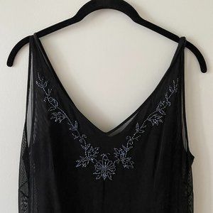 Vintage Y2K Suzy Shier Sheer Black Beaded Dress (Size 7)