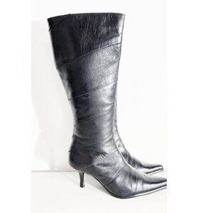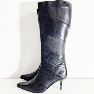 Vintage Y2K Tall Black Leather Boots / size 37 EU / size 6.7-7 US