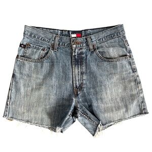 Vintage Y2K Tommy Hilfiger Flag Patch Denim Cutoff Freedom Jean Shorts