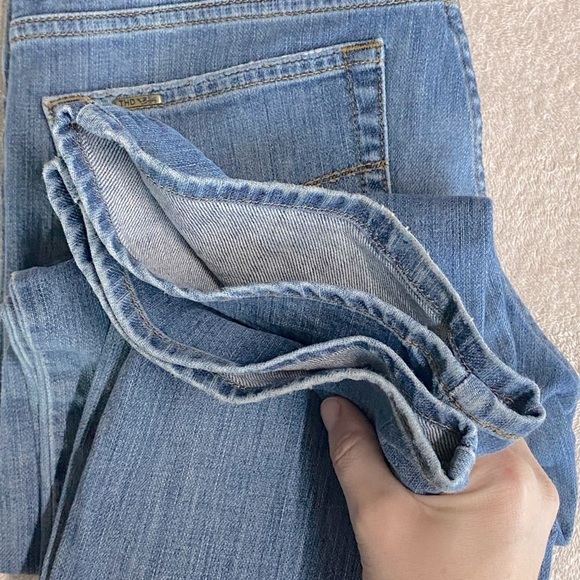 Great vintage condition. Minimal signs of wear shown in pics. Med light Wash. mid rise, straight leg. Size 27, measurements in pics. No holes or stains. No pilling, puckering or pulls.