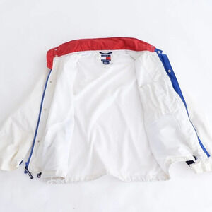 Vintage Y2K Tommy Hilfiger White Full Zip Windbreaker w Hidden Hood Size Large