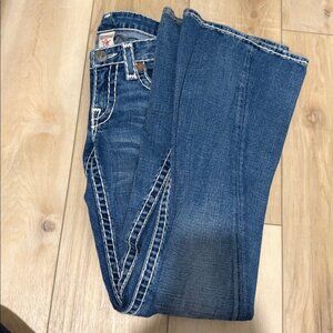 Vintage Y2K True Religion Dark Wash Ultra Low Rise Flare Leg Jeans 25