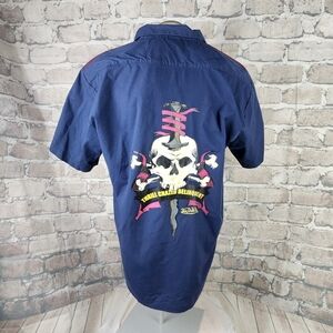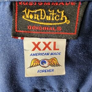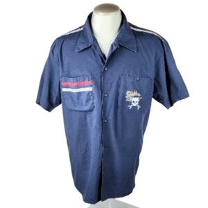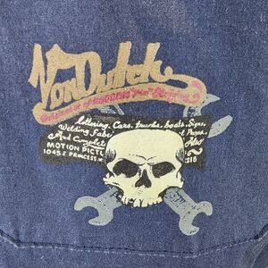 Vintage Y2K Von Dutch Mechanic Button Front Shirt Blue Skull Graphic Size XXL
