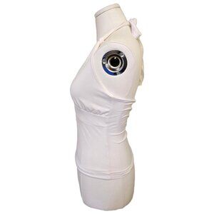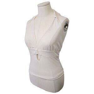 Vintage Y2K White Halter Top Cut Out V Neck Keyhole Cute Going Out Beach Sz M