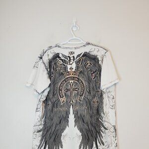 Vintage Y2K Wings And Cross Graphic Shirt White Size XL