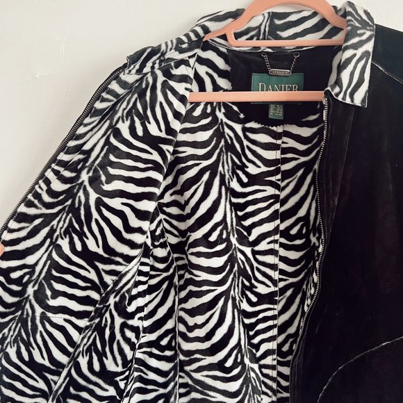 Vintage, Y2K, Zebra Print Leather Suede Black Jacket | Vintage Unique Leather Ja