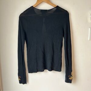 Vintage Y2K black stretch mesh cardigan with hook closure and floral embroidery