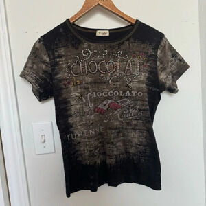 Vintage Y2K chocolate rhinestone bling tee shirt M