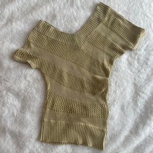 Vintage Y2K gold metallic knit crochet open shoulder top