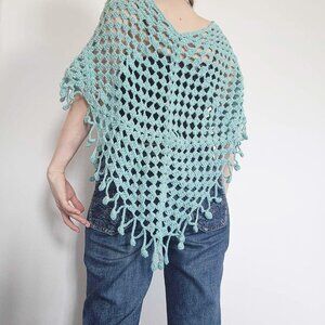 Vintage Y2K handmade soft & comfy aqua crochet poncho