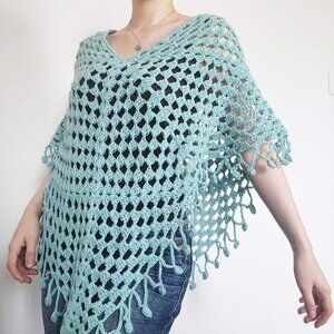 Vintage Y2K handmade soft & comfy aqua crochet poncho