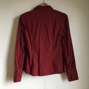 Excellent preowned vintage condition, dark brown striped steampunk-inspired blazer and vest set with pop of colour cranberry-red button down dress shirt by le chateau. Gorgeous, high quality set. The blazer and vest are sold as a set. If you would like the shirt separated, please let me know. But they were all made for each other. Made in Canada with safe, high quality materials. Only worn once or twice.