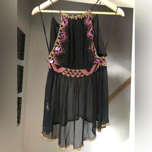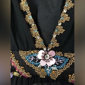 Vintage Y2K luxury designer Matthew Williamson beaded sheer black tank