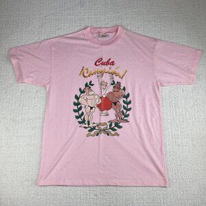 Vintage Y2K new impulse design Cuba funny art graphic shirt Pink Sz SG (M) READ