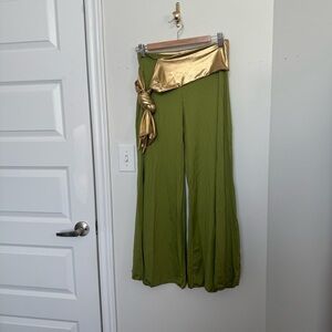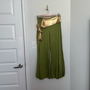 Vintage Y2K wide leg Apple green bling tie up pants Fairycore woodland Y2K XL