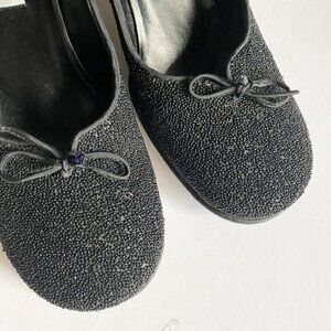 Vintage Y2k Barneys New York Co-op Beaded Black Square Toe Heels 9 Wide