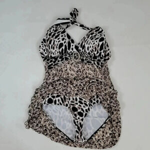 Vintage Y2k Empire Waist SWIMWEAR ONE PIECE paisley Sporty Preppy Pinup Size M