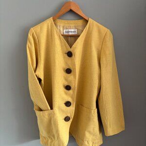 Beautiful linen YSL blazer with big wooden buttons. Please note: It was difficult to capture consistent pics of the colour with this one. It's a bit more toned down than the main pic, but closest to that in colour.