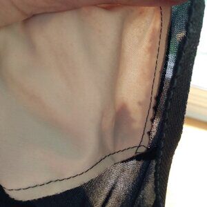 It is in fair used vintage condition because of the bust. The foam breast pads have disintegrated over time and are a loose dust inside. You could snip a hole on the white fabric on the inside to empty the foam dust out. I am leaving this for you to do as you may want to insert new foam pads and I don't know where you would want the hole snipped and the size etc.