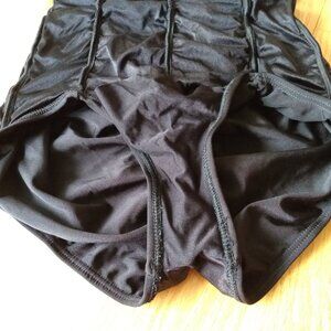 Vintage YSL Swimsuit Sz 14 Yves Saint Laurent Black Ruched 1 Piece Bathing Suit