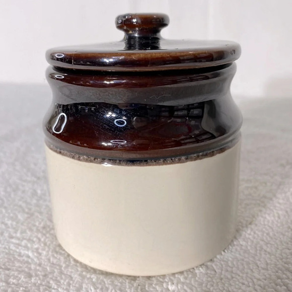 Vintage Ye Old Canadian Crockery Ceramic Abenakis Kitchen Crock Mini Canister
