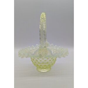 Vintage Yellow Fenton Uranium Glass Hobnail Basket Glows UV MCM