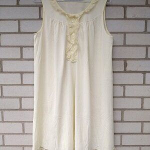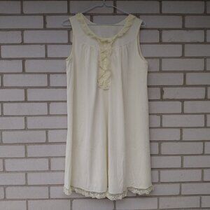 Vintage Yellow Nylon Nightie Retro Summer Nightgown Short Knee Length 43"B Mediu