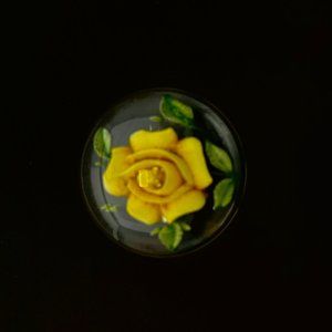 A STUNNING YELLOW ROSE PAINTED FLOWER ON THE UNDERSIDE ENCASED IN CLEAR LUCITE.