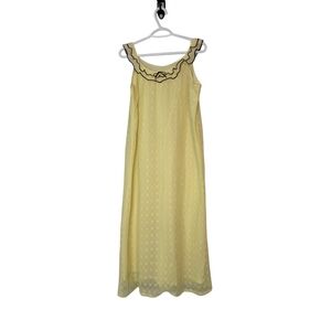 Vintage Yellow Sheer Nightgown Brown Ruffle Trim Sleeveless Maxi Lingerie Size M